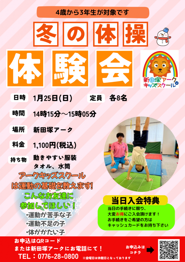 ・実施・1月25日(日) 14:15〜15:05 ・対象・4歳〜小学3年生