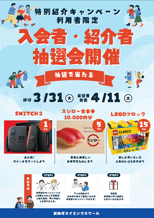 会員様からのご紹介で、とてもお得な内容でスイミングをスタートしていただけます!