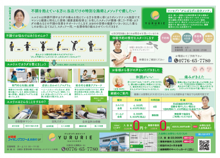 【YURURIEおおの OPENのご案内】